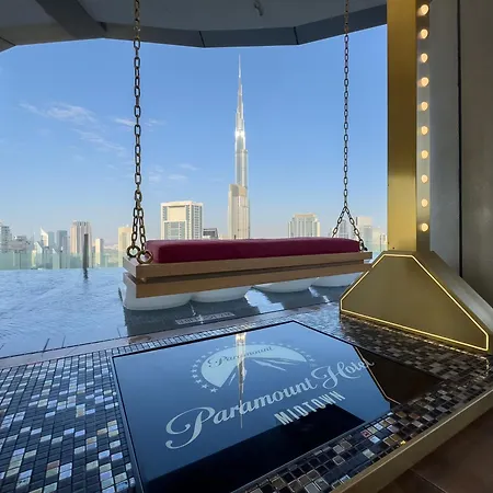The 113 m² 64Th Floor Skyline Pool With Burj Khalifa View In Paramount Hotel Midtown Dubai is located only 1.6 km from HSBC Bank Middle East Limited and around a 25-minute walk from Play Town Dubai. Set right around the corner from Bay Avenue Park, this 2-bedroom apartment comes with a rooftop pool, a Jacuzzi and a sauna.